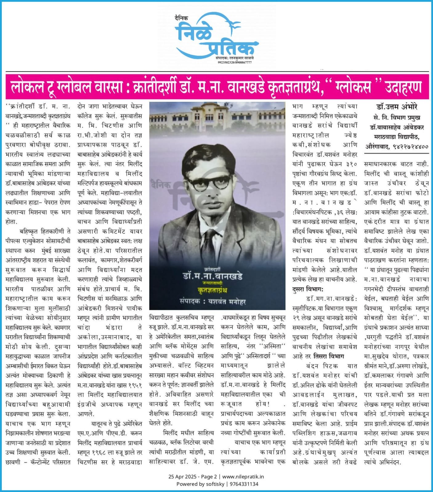 In The News Newspaper Clippings Explore historic newspaper clippings showcasing Dr. M. N. Wankhade. Each piece reflects the recognition he received over time.